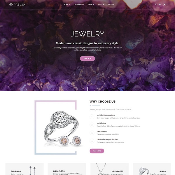 Jewelry Magento 2 Theme is a niche of Precia theme bundle that provides modern, clean and professional design for creating Jewelry online store. It will be the best choice for an impressive and attractive shop website which selling jewelry.