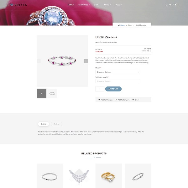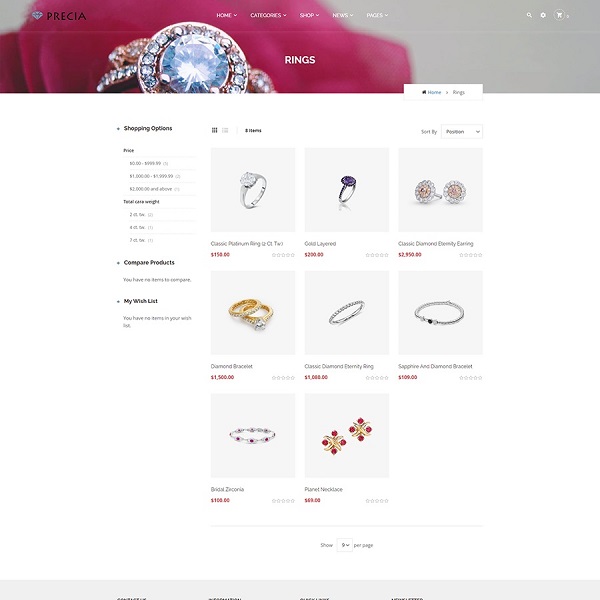 Classic Jewelry Magento 2 Theme is a niche of Precia theme bundle that comes with a charm design for building luxury Jewelry online store.