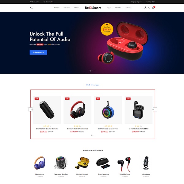 Headphone Magento 2 theme is a niche of BzoSmart theme bundle which created for headphone stores with a clean, professional, and attractive style. This Headphone Magento 2 Theme comes with a full homepage slideshow that allows you easily highlight your items & content. Besides, the Deal of the Week box will help you effectively attract website users to your campaign.