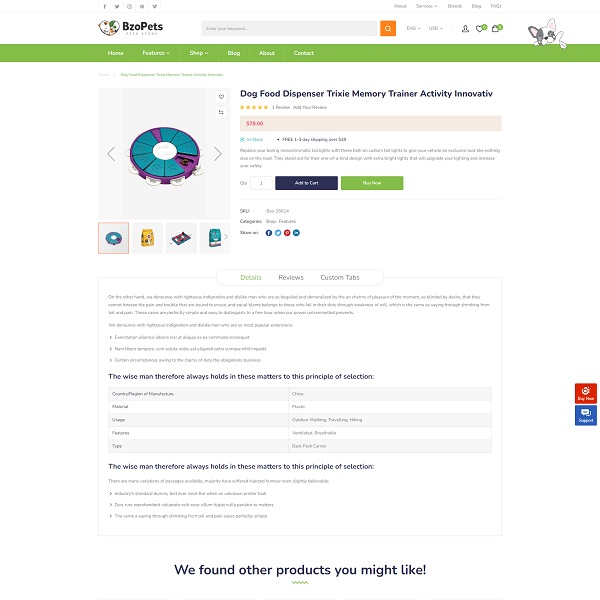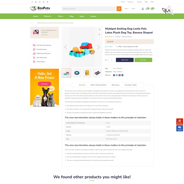 It allows you to represent your shop categories in an attractive way along with Featured Products & Best Sellers sections. Specially, the pet shop Magento template is integrated with Ajax Search Magento extension that makes it simple and quick for website users to locate what they’re looking for.